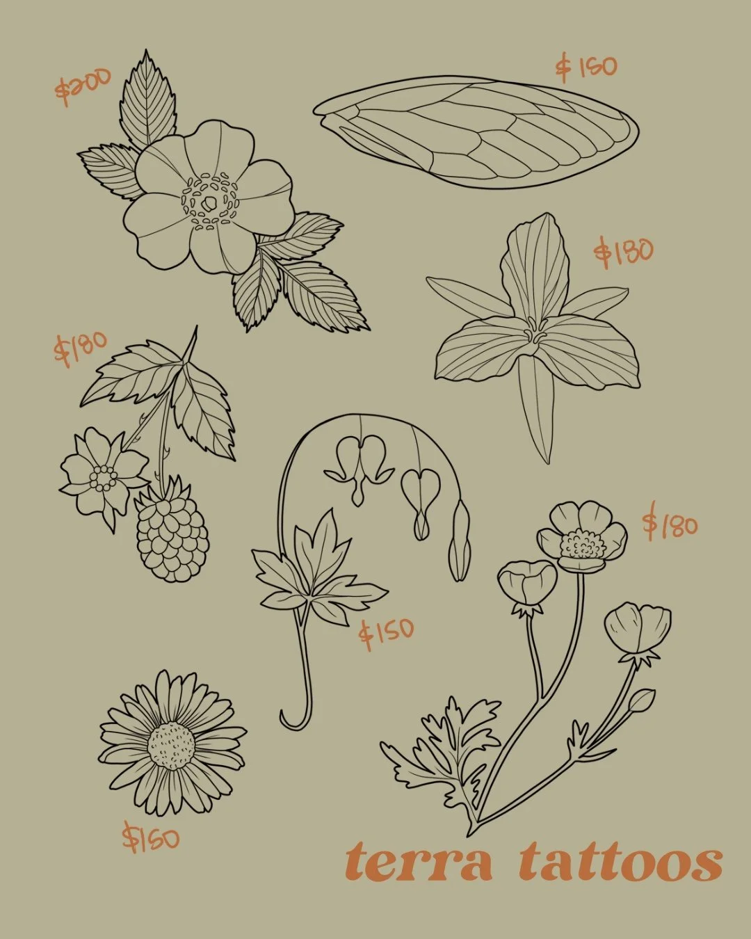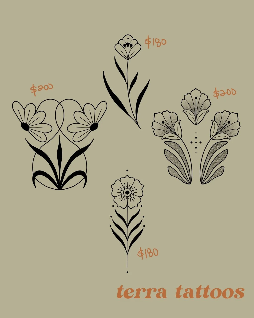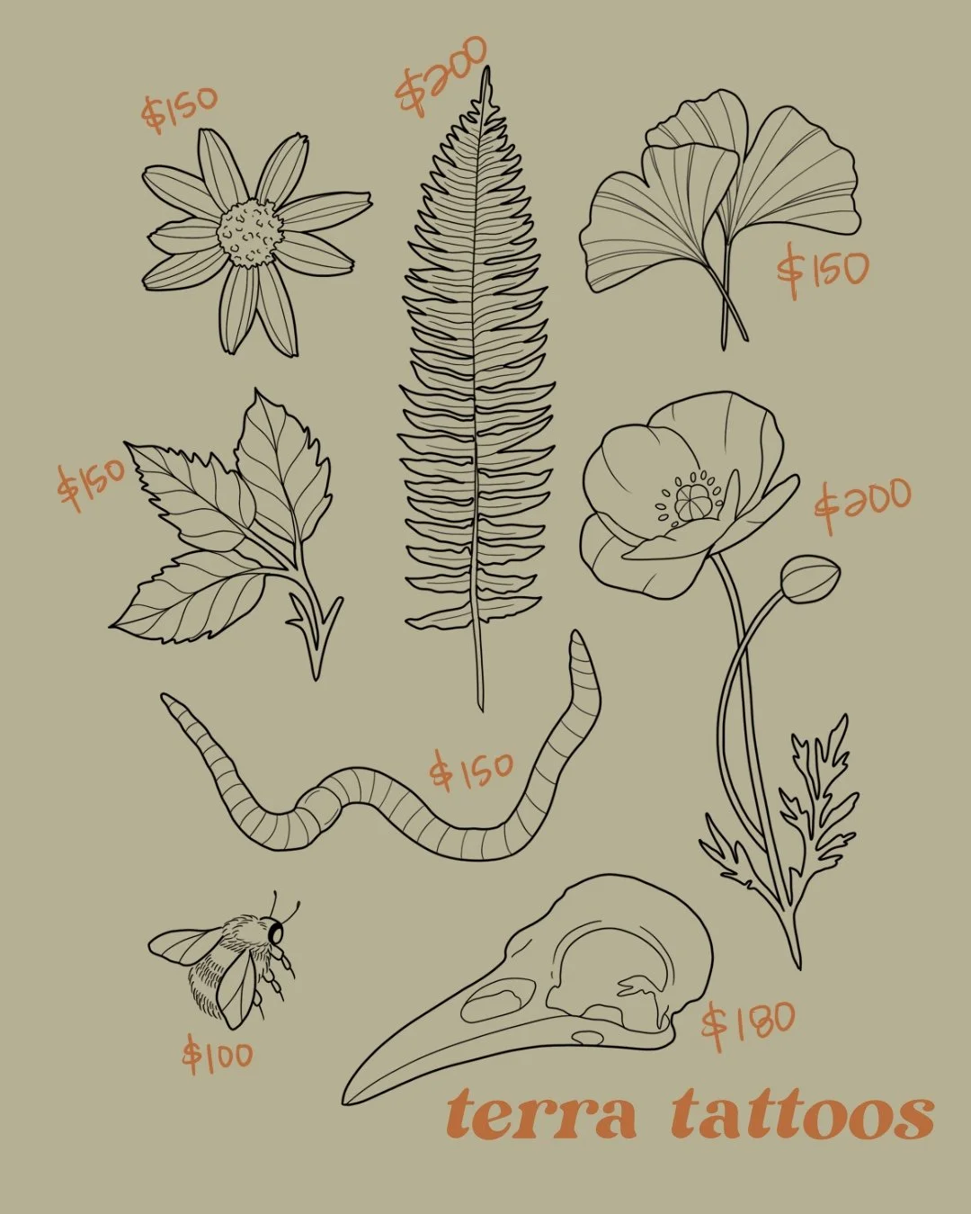 Just a reminder that these appointments are first come first served; you are allowed to book 1-3 designs; they are pre-sized which means no alterations; I will only be tattooing arms and legs; these appointments are back to back so please try not to be late as it will throw off my schedule.